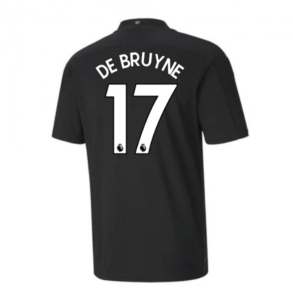 Manchester city away jersey 19 20 with official kevin de bruyne 17 print.